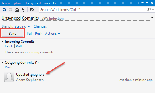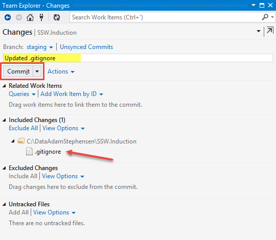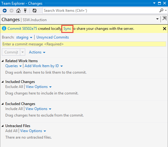 7, In Team Explorer, navigate to the Changes window. Enter a comment and click Commit.