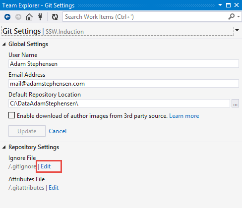 4. In Settings | Repository Settings, click the Edit link next to ‘/,gitIgnore’